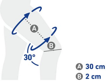 Door het schuine verloop van de apart instelbare klittenbanden oefent de actieve MyoTrain bandage een exacte compressie uit op de spieren. Direct na de blessure kan de betreffende plaats door de toepassing van de acute pelotte gericht worden gecomprimeerd om een bloeding te stoppen of een bloeduitstorting te beperken. De grotere, functionele pelotte met de lengtegroeven stimuleert de lymfeafvoer en vermindert zwellingen, oedeem en hematomen. Bij een gevorderde revalidatie en ter voorkoming van blessures kan de bandage ook zonder pelotten worden gedragen.