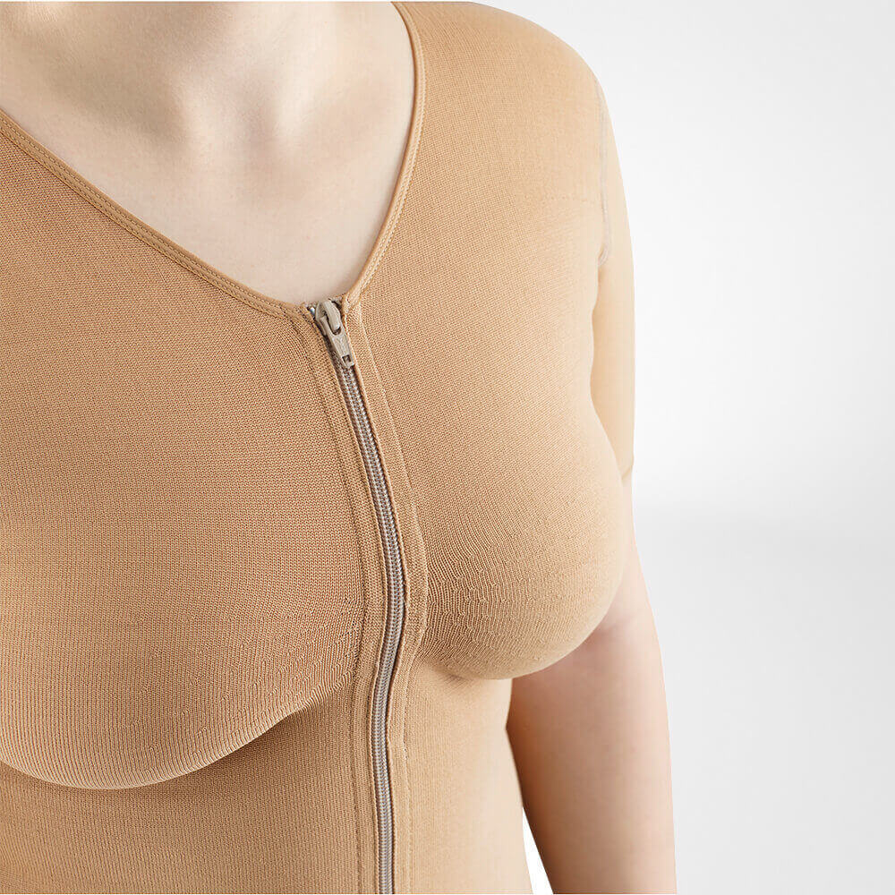 Met een hoog gehalte aan zachte microvezels, is het gemakkelijk aan te trekken en zeer comfortabel om te dragen op warme of koude dagen. Het borstgedeelte is naadloos zodat u zich geen zorgen hoeft te maken over onaangename druk. De VenoTrain curaflow thorax kan worden geoptimaliseerd voor uw individuele behoeften met tal van speciale opties: het is bijvoorbeeld verkrijgbaar met een armmanchet met of zonder compressie om zwelling in het schoudergebied te voorkomen.